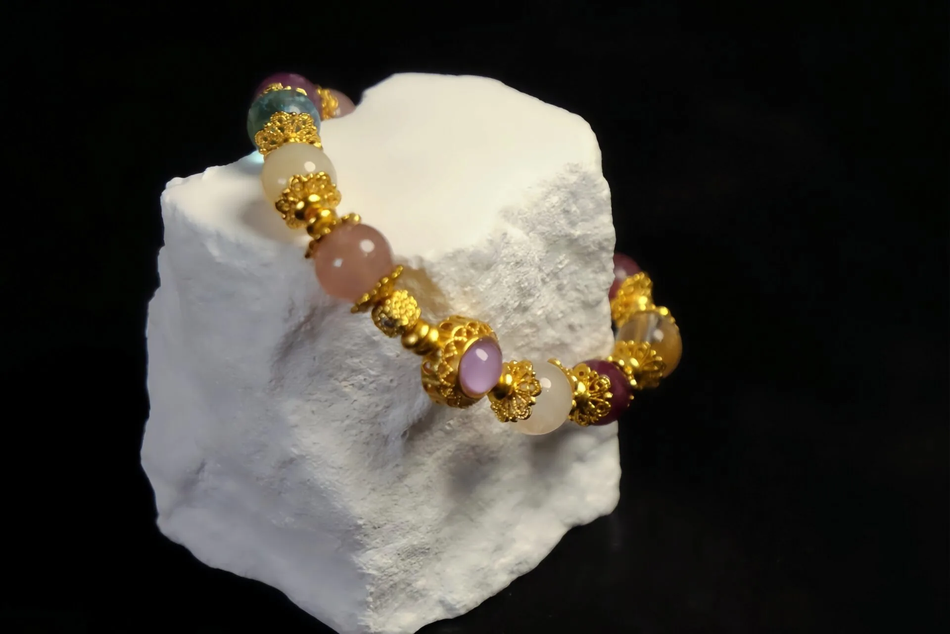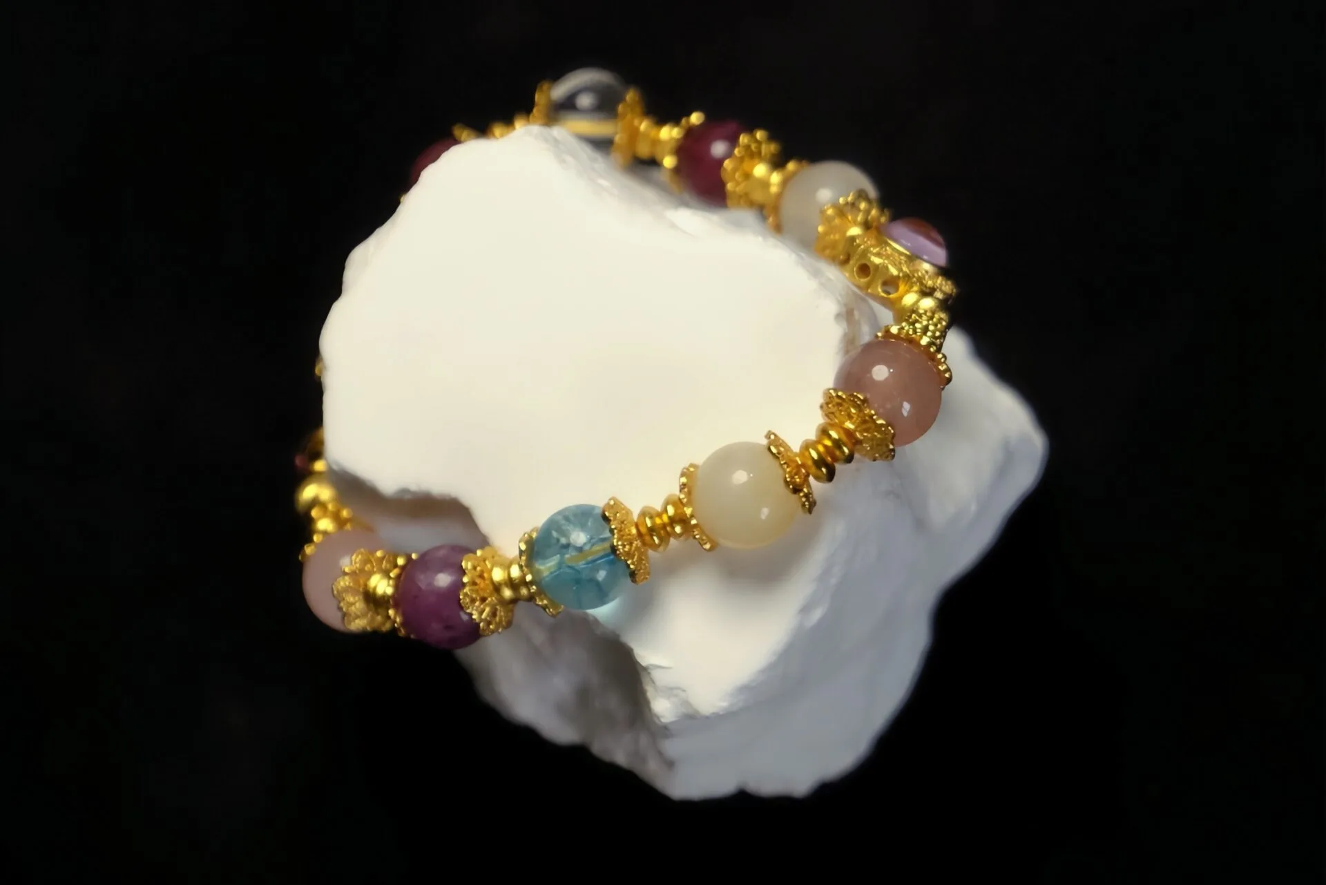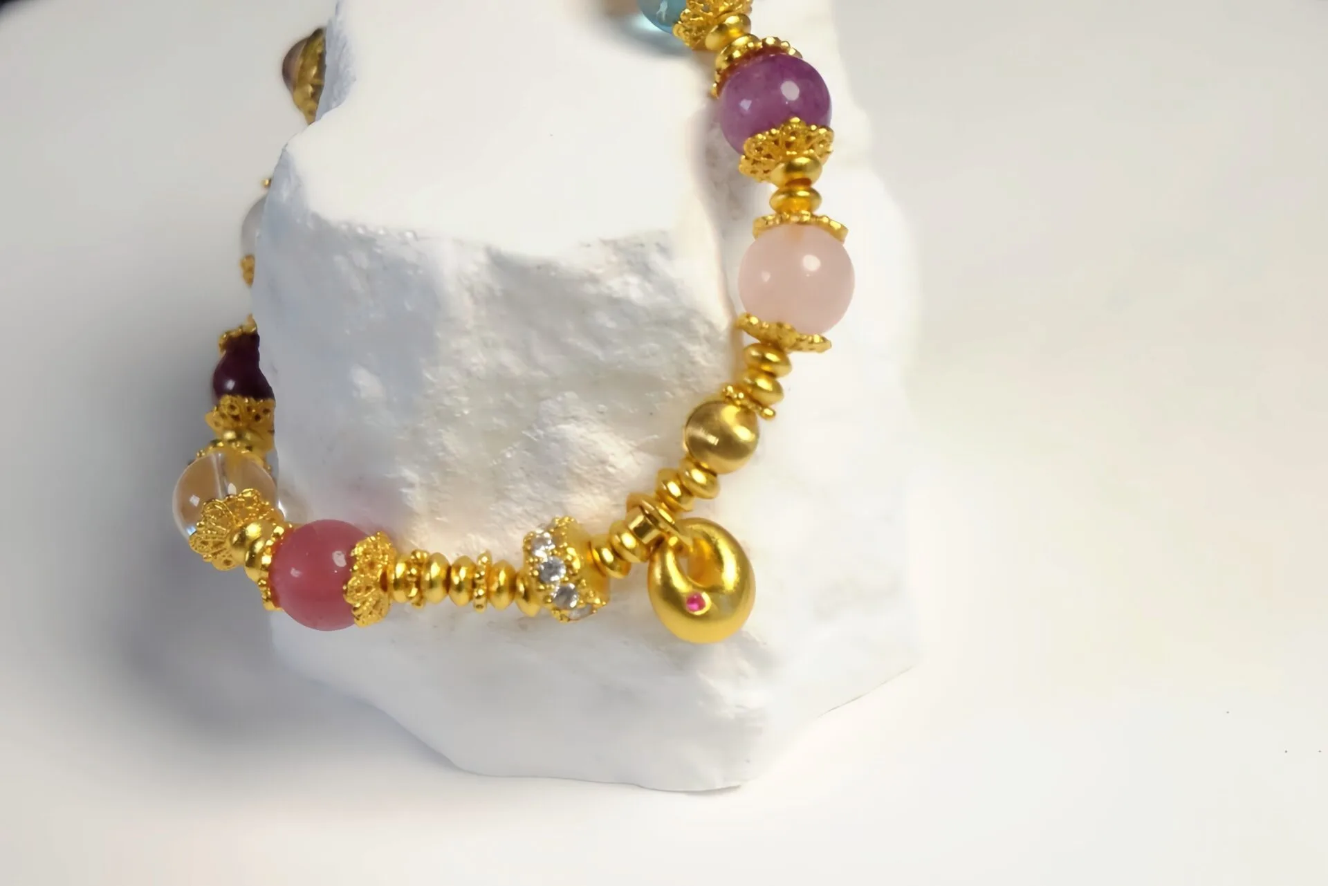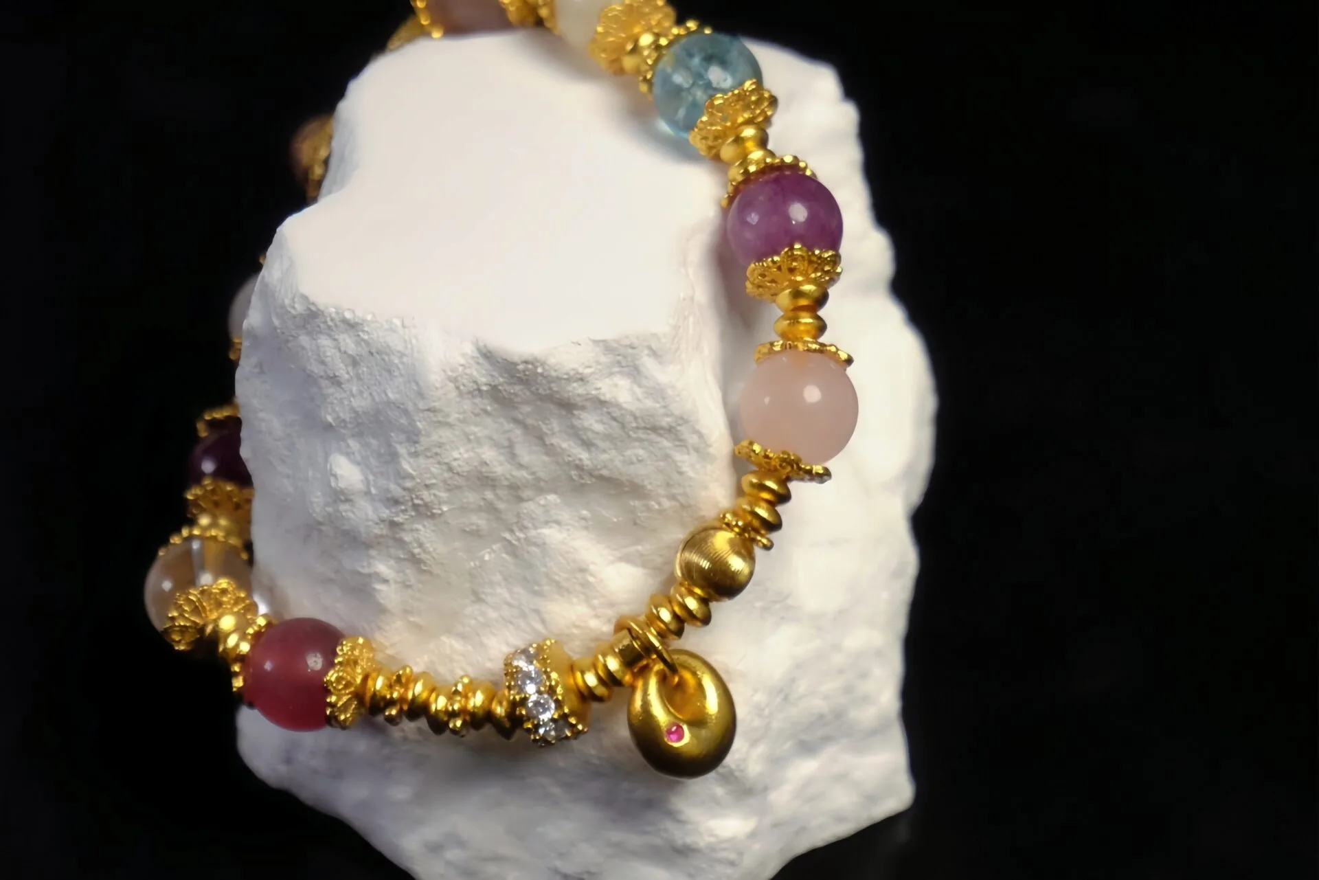 这款手链由各种珍贵宝石串成