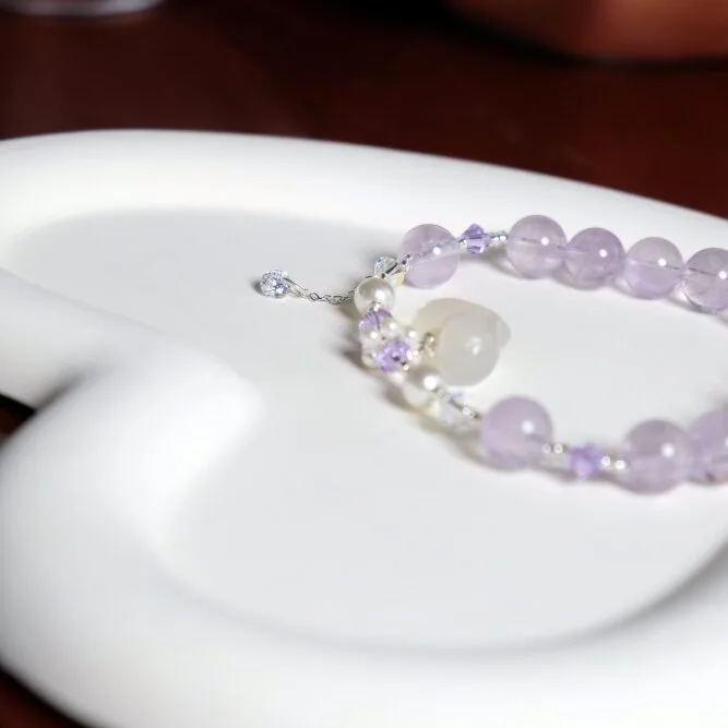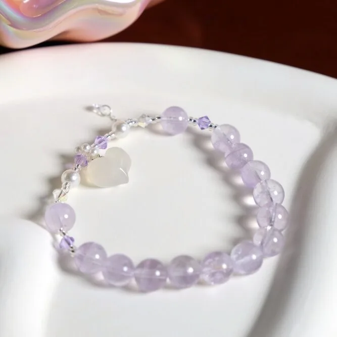 主要材料为紫水晶,玛瑙为配饰